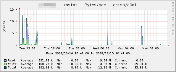 Update : Thanks to a patch from Viktor Sokolov, the iostat.pl script should now work with older sysstat versions, including the one that shipped with Debian Etch. I tried to update my original post over on the Cacti forums, but kept getting hit with a wonderful error message ("Mistake! Your message is sent to hell. Try still times who knows - can it will turn out?")