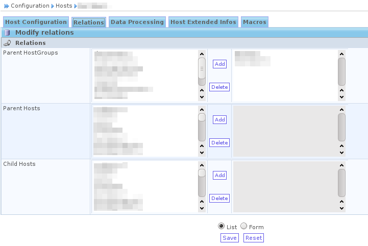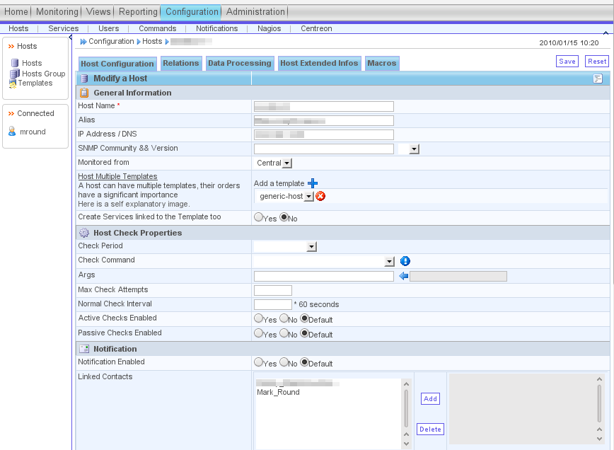 After setting up your escalation groups, contacts and templates, you can then easily create new hosts, and assign them to groups, pull in templates, and tweak settings through the GUI: