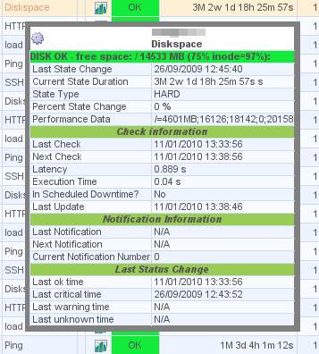 Another nice touch is the popup service detail, which is displayed when you hover the mouse over the service name :