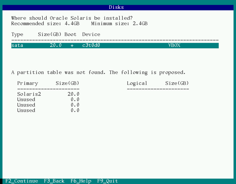 F2_Continueshortcuts down the bottom. Takes me right back to installing Solaris 8 on old Pentium systems! - Automated Installer : This provides a hands-free network installation system, and replaces the old Jumpstart system. You need to have your own IPS repository (more on that later) set up, or have access to the Internet so you can reach Oracle’s IPS repository.