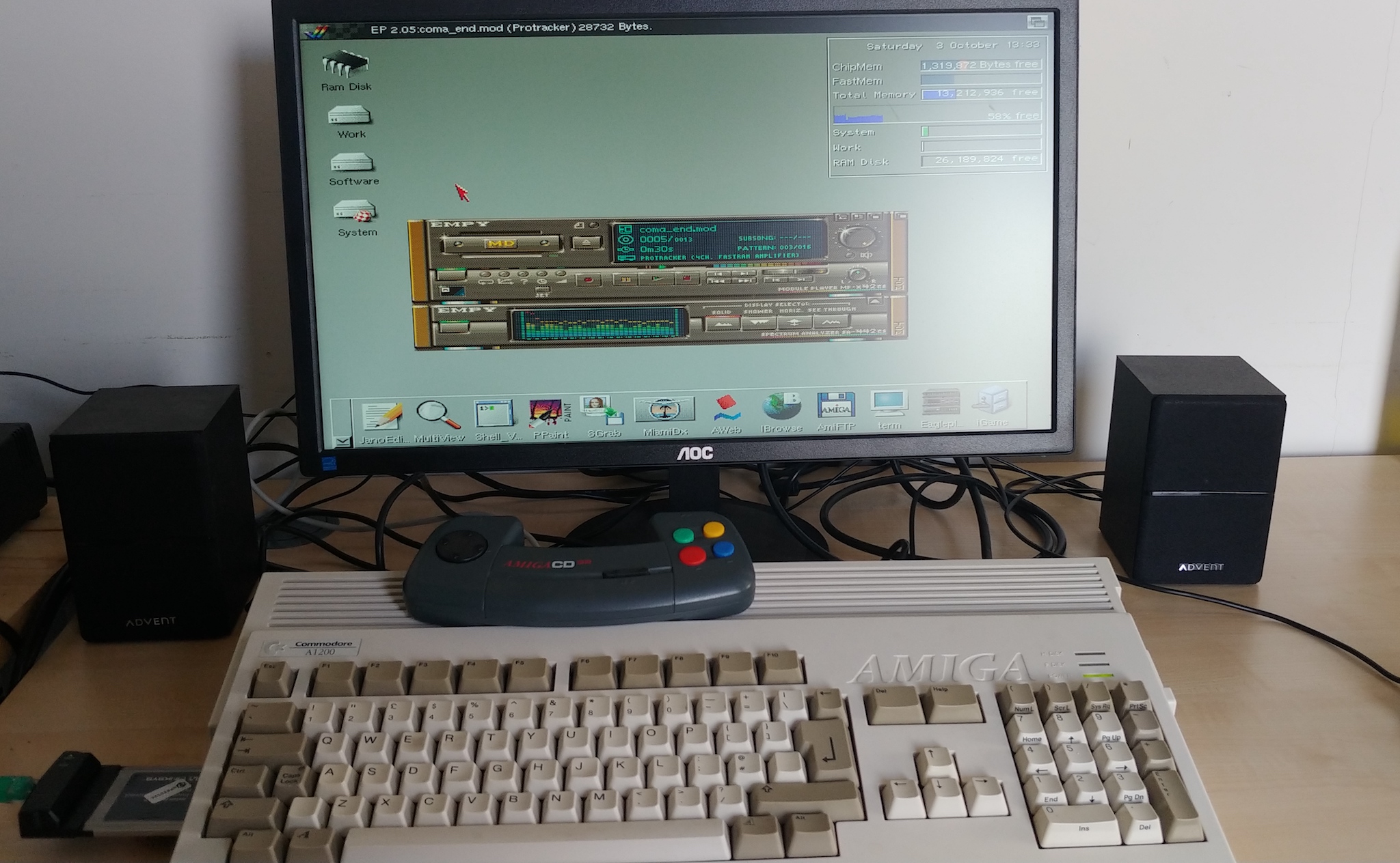 All I can guess at this point is that I somehow ended up with a couple of pairs of faulty ROMs before I tried the 3.1.4 set. It’s fantastic to have the old beast up and running again, and I spent an afternoon rediscovering all the projects I had been working on, got it back online with a PCMCIA network card, listened to some classic MODs and played some classic games.