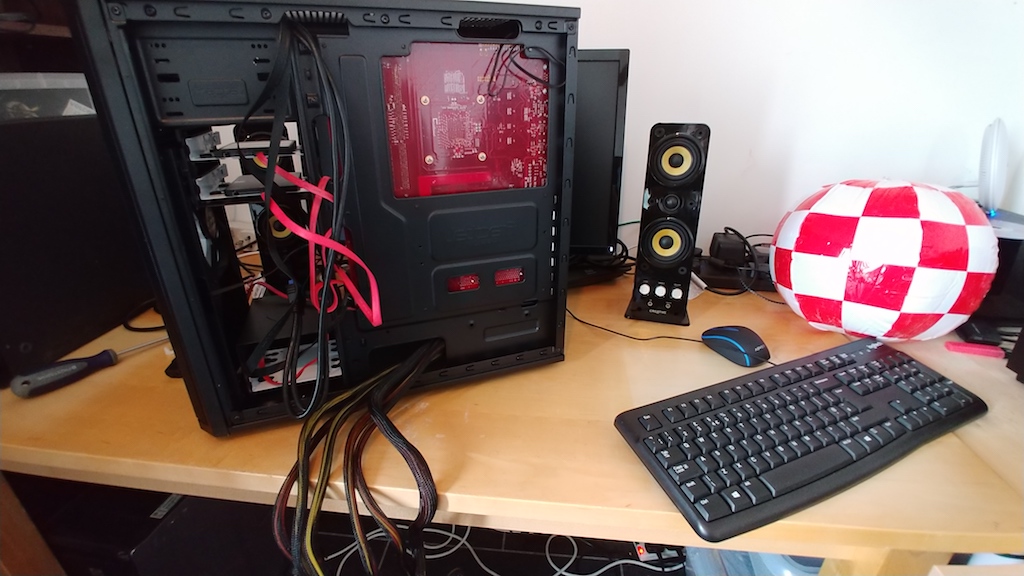 I guess this is one of the advantages of the Amiga scene being so “niche” - there can’t be many places where you can talk to the person who built your system and have them help troubleshoot it with you! Here it is with the sides removed while I was working on it (the inflatable Boing Ball came with my 3.1.4 ROMs):