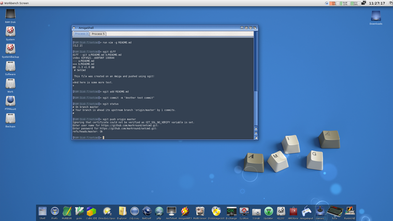 Here’s an example run from the AmigaShell showing some of the other sgit commands such as status and diff: