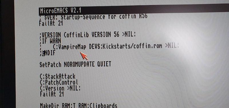 The lines relating to VampireMap and CoffinLib were doing something that presumably expected Core 2.12 to work. For those interested, there’s a page on the wiki that discusses VampireMap, it’s a tool for temporarily loading a Kickstart ROM image file into the Vampire’s memory.