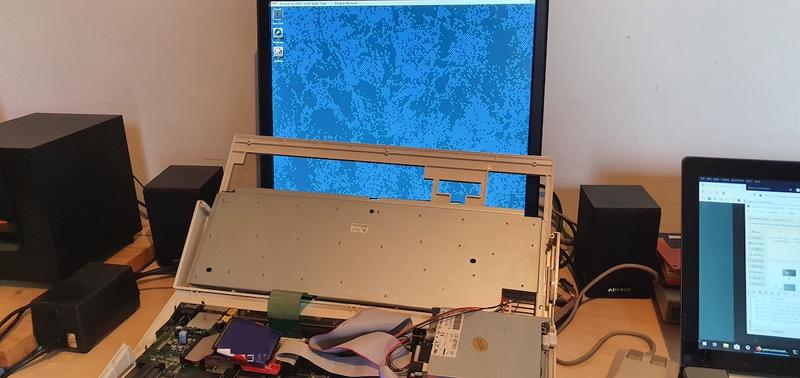Now came the task of getting an OS up and running again. I tried booting from my existing CF card with a heavily customised OS 3.9 installation, but I was just left with a black screen on both outputs. A pretty stock OS 3.1 installation I had on an old 2GB CF card did however boot fine, so I knew the culprit was one of the many tweaks I’d made to it over the years. I tried hacking things out of the startup-sequence but gave up as I decided in the end to build my new system on CoffinOS.