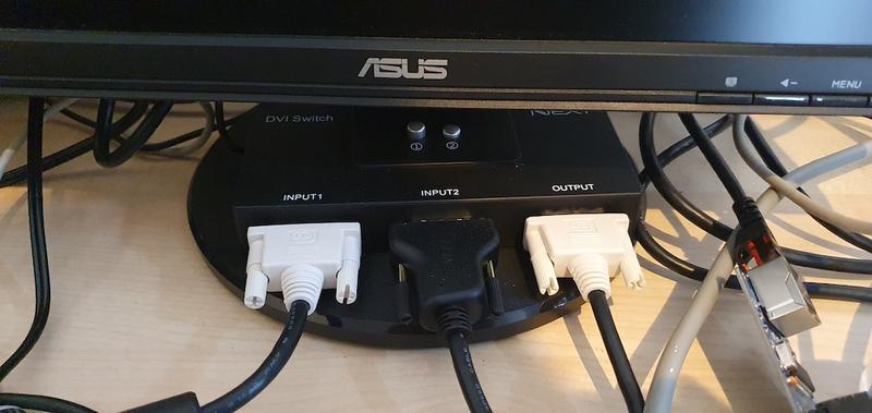 - A DVI-switch so I can swap between the Amiga’s native video output and the Vampire
