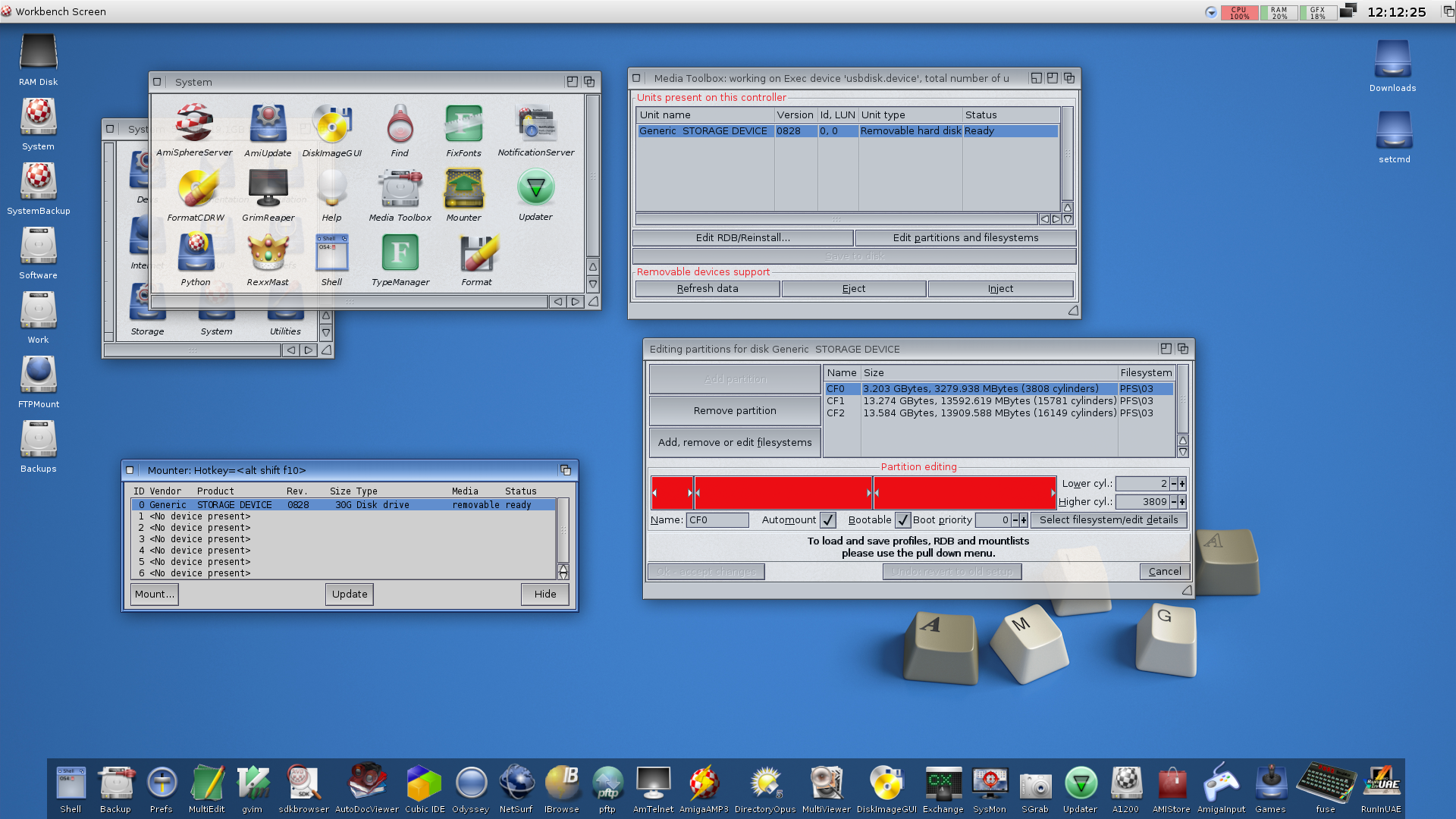 I again had to change the drive names so they didn’t clash with the Amiga OS 4 system; Here’s a screenshot of the X5000 showing the CF card opened in Media Toolbox - all I did was change the partition Name field to CF0 instead of DH0 and so on.