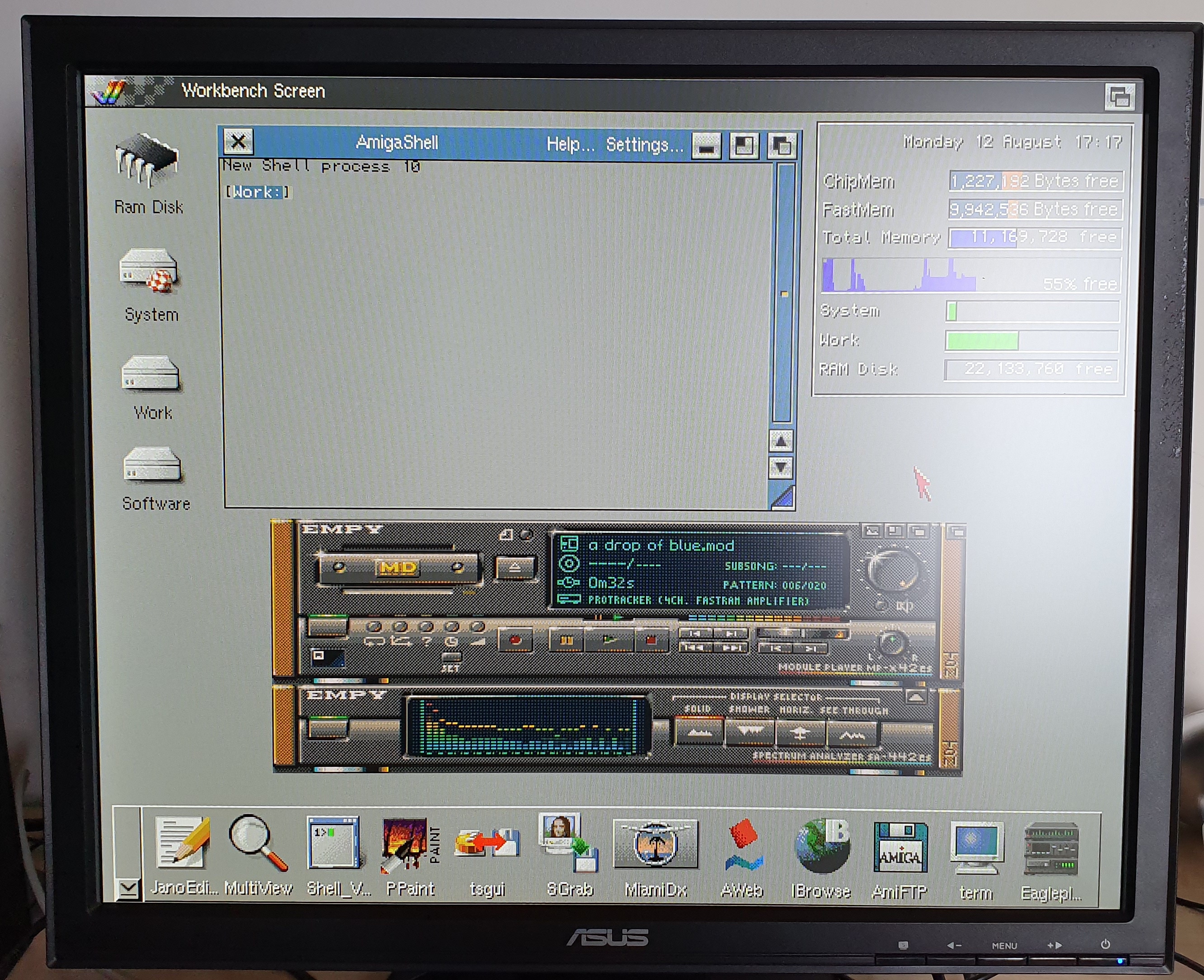 It’s simply amazing to see that running on a real Amiga, particularly when a 68060-based system and RTG board would have set me back thousands of pounds and would have required a full tower-build out with PCI busboards and so on.