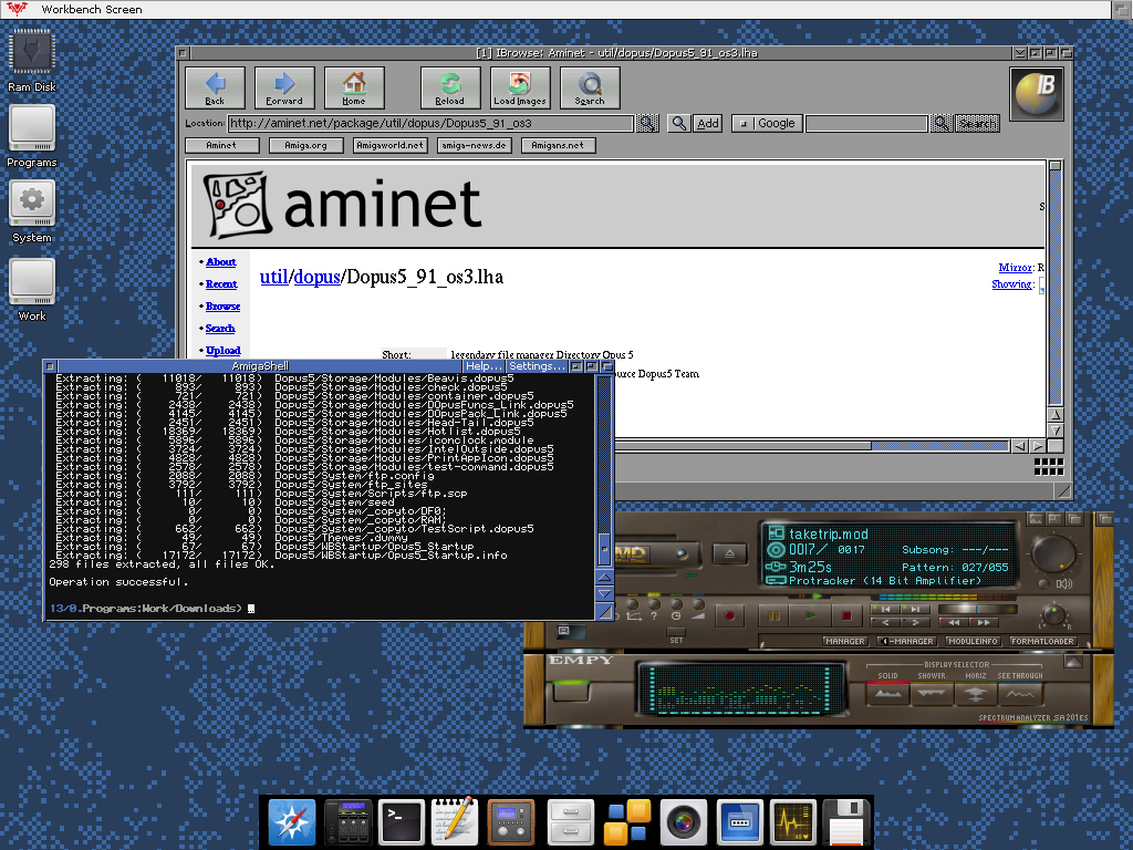 And now, the system is just incredible. It’s lightning fast - boots in seconds (even on the “slow” internal A1200 IDE port), programs open instantly and I can really use it comfortably for things I’d previously only ever been able to do on the faster PowerPC-based X5000 or UAE emulators. Even browsing Aminet and downloading packages is snappy: