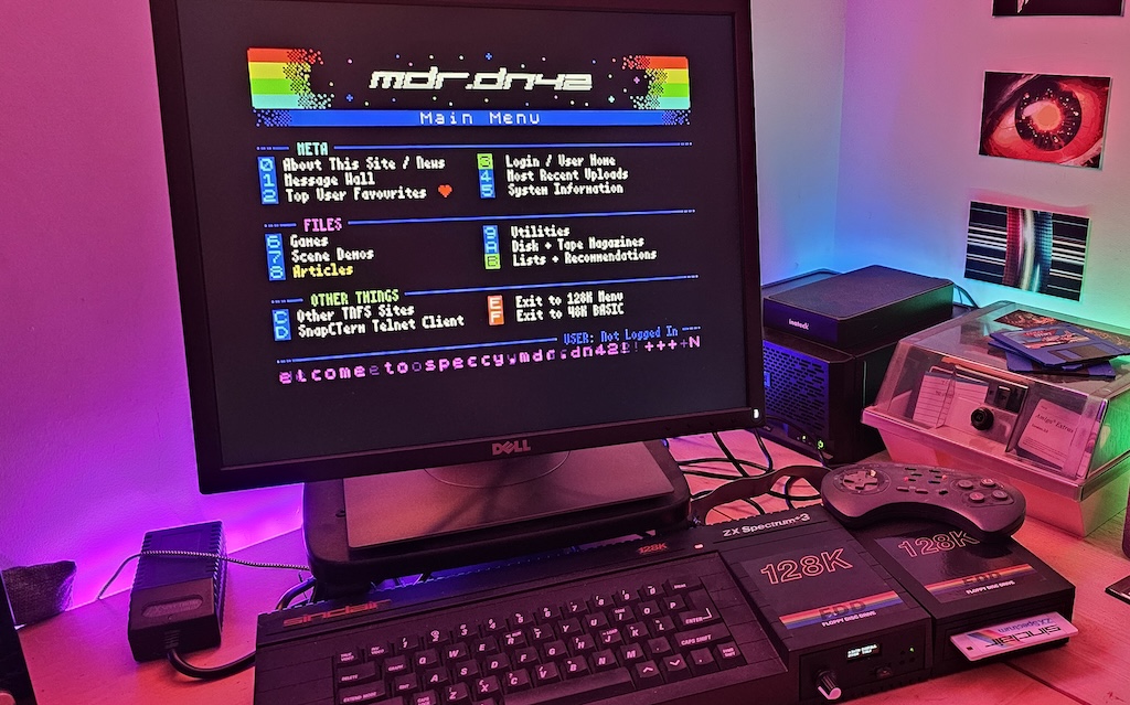 speccy.mdr.dn42 and I have also ported the web-based emulator and infrastructure to be available at https://speccy.mdr.dn42. Join in the retro 1980s fun with games, message boards and lots of other features!